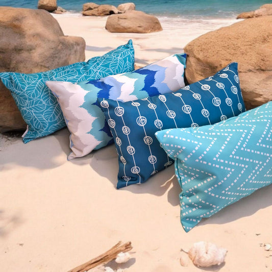 Our waterproof outdoor decor starts with a design. Geometric/Moroccan designs are our favourite. Then these designs are custom printed on to high quality fabrics. Then the fabrics are treated to be 100% waterproof and highly UV/mould resistant. Once we are done marveling over our gorgeous new fabrics, they are hand made in to functional, trendy and durable outdoor soft furniture/decor. Such as Bean bags, poufs, throw pillows, floor cushions. All these are handmade by carefully selected ladies from clean households.