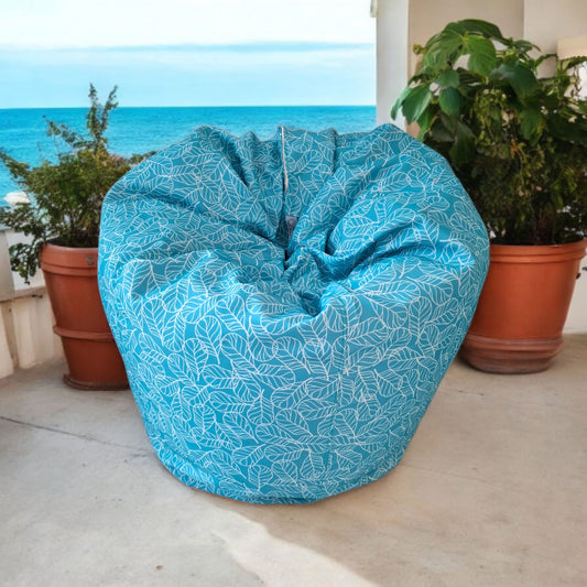 Blue waterproof outdoor bean bag, Round compact - Bed of Leaves