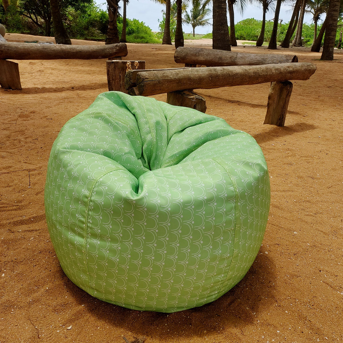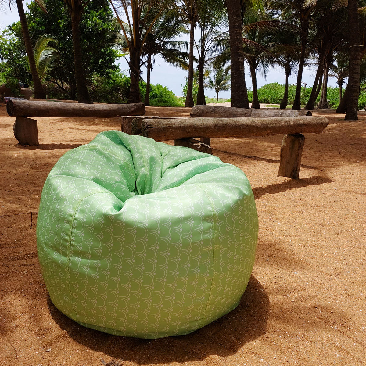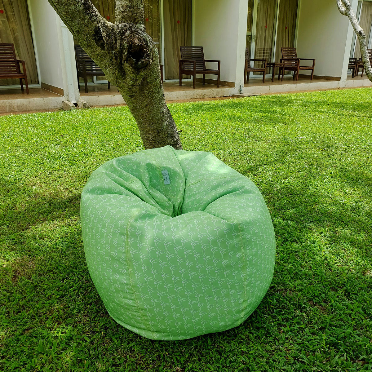 Green waterproof outdoor bean bag, Round compact - Walls of Taj