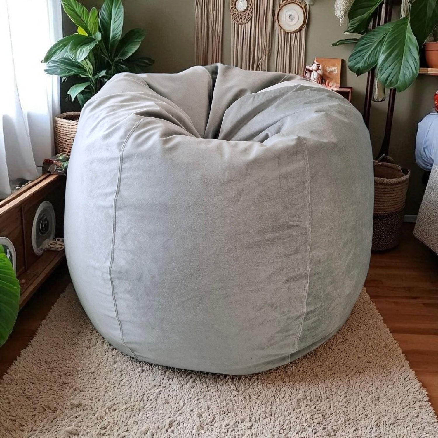 Mint green/grey green super soft velvet compact round bean bag chair with waterproof inner case. Throw pillow is not included.