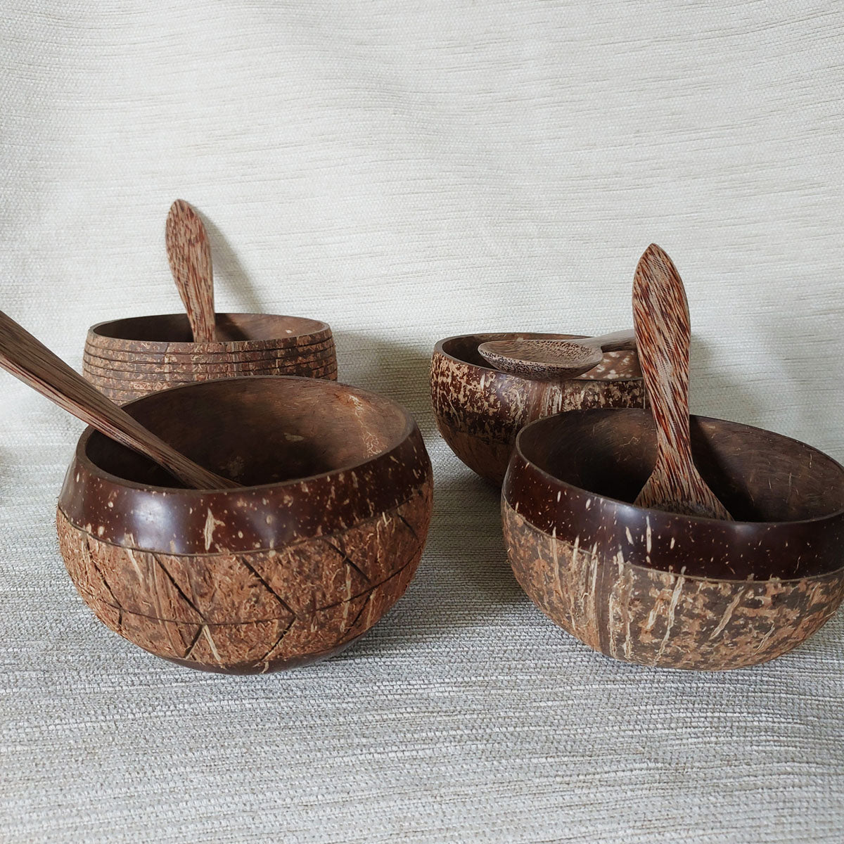 These handmade coconut shell bowls set is hand carved with gorgeous designs. Ideal as soup bowls, salad bowls or cereal bowls. To enjoy nature, as it was created for us. There are 4 unique designs as seen in the pictures. You will receive a mix of them and surely at least one of each design.