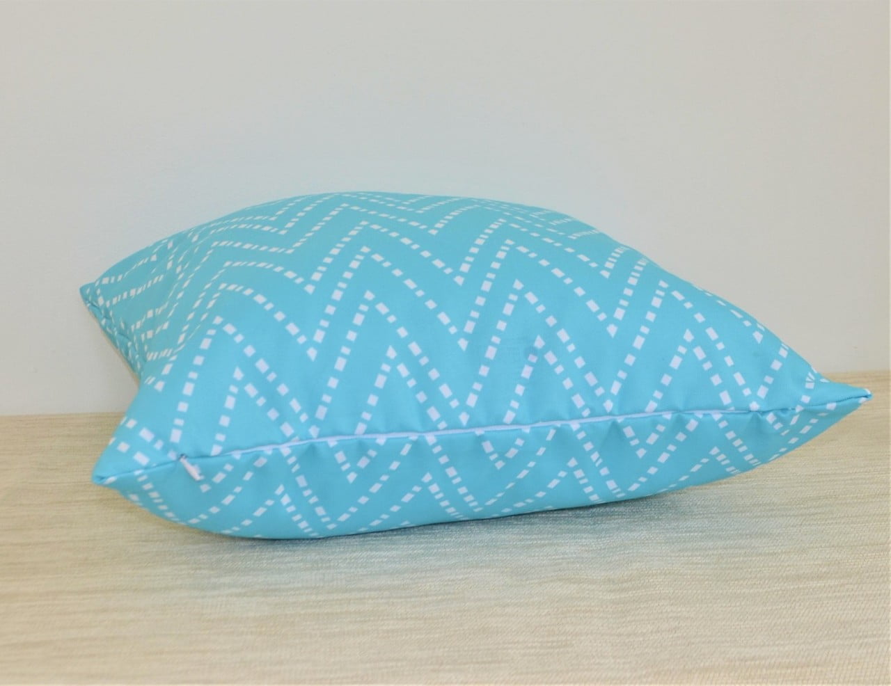 100% waterproof outdoor cushion cover/patio pillow, Aqua/Turquoise/Light Blue, Zig Zag/Chevron pattern