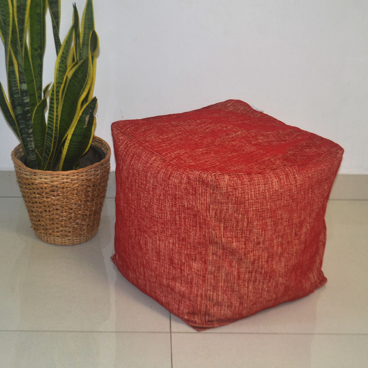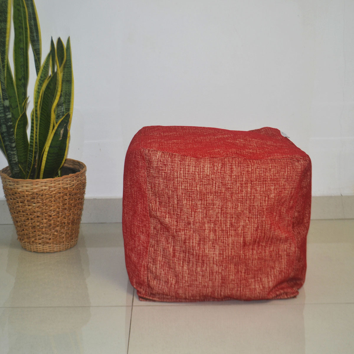 Vermilion is a red pouf in an exotic red and cream weave by ZAHAARA Sanctuary. Comes with a waterproof inner case. It is soft to the touch and the cover is machine washable.