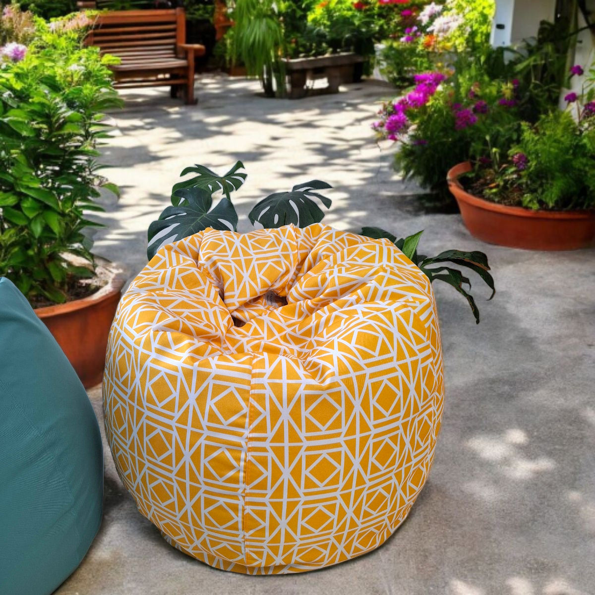 Compact round bean bag in our sunny Abagail fabric is one to add a touch of elegance, colour and comfort to your home/patio/garden/poolside.